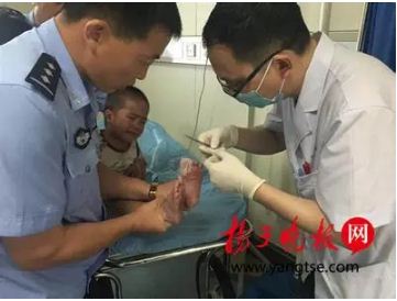 Sau 30 phút, Bình Bình được đưa vào phòng chữa trị, bác sĩ đã khử trùng và cẩn thận cắt những miếng da bị bỏng ra, sau đó bôi thuốc rồi băng bó chân lại cho cậu bé. Lúc này, mẹ Bình Bình mới khóc lóc hớt hải chạy đến bệnh viện, rối rít cảm ơn anh Trương cùng cảnh sát.