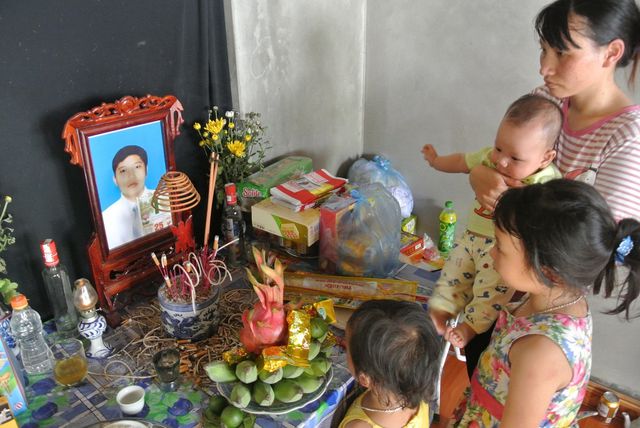 Chị Bích mắt chị đỏ hoe, ngấn nước nhìn tấm di ảnh của chồng trong nghi ngút khói hương, giọng Bích như nghẹn lại: “Anh ấy bỏ mẹ con em đi thật rồi chị ạ. Em sinh con nhưng không đủ sữa cho bú nên em phải xin thêm sữa hoặc cho cháu uống sữa bột. Mới ngày nào anh ấy còn dặn em ở nhà, anh đi xin sữa cho con, vậy mà anh ấy đi mãi không về nữa”.