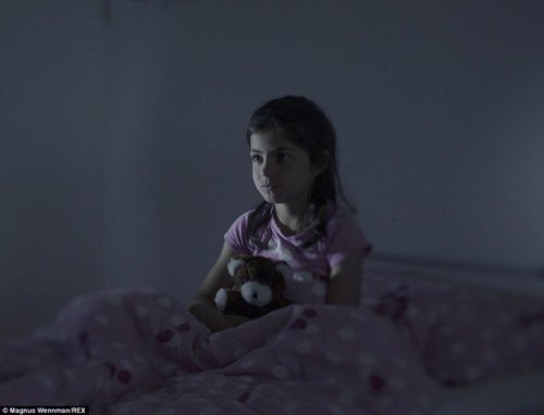 Trong ảnh là bé Esra (11 tuổi), Esma (8 tuổi), and Sidra (6 tuổi), đang ngủ cùng mẹ. Ngày nào các em cũng gặp những cơn ác mộng kể từ sau khi bố các em bị bắt cóc. |