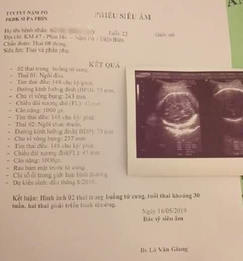 Giấy siêu âm thai của chị Chò - Ảnh: Vietnamnet |