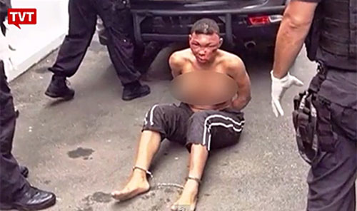 Trong ảnh, cô Veronica Bolina (25 tuổi, sống tại Sao Paulo, Bazil) đang ngồi thất thần trên nền đất. Nửa trên thân thể của cô bị lột trần, tay bị trói. Mái tóc dài của cô bị cắt trọc và mặt, cơ thể đầy thương tích tới biến dạng.