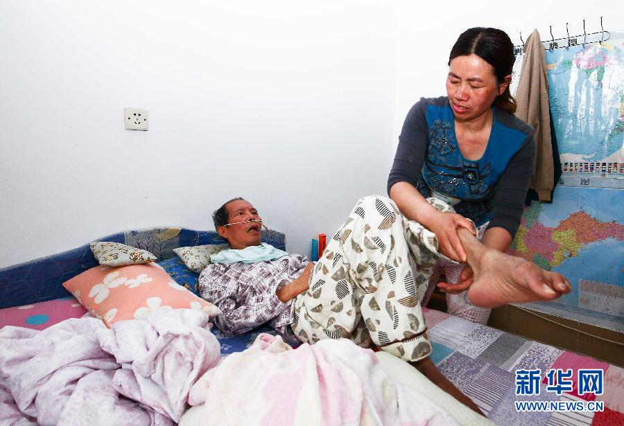 Bà Thang ngày ngày chăm sóc cho chồng. |