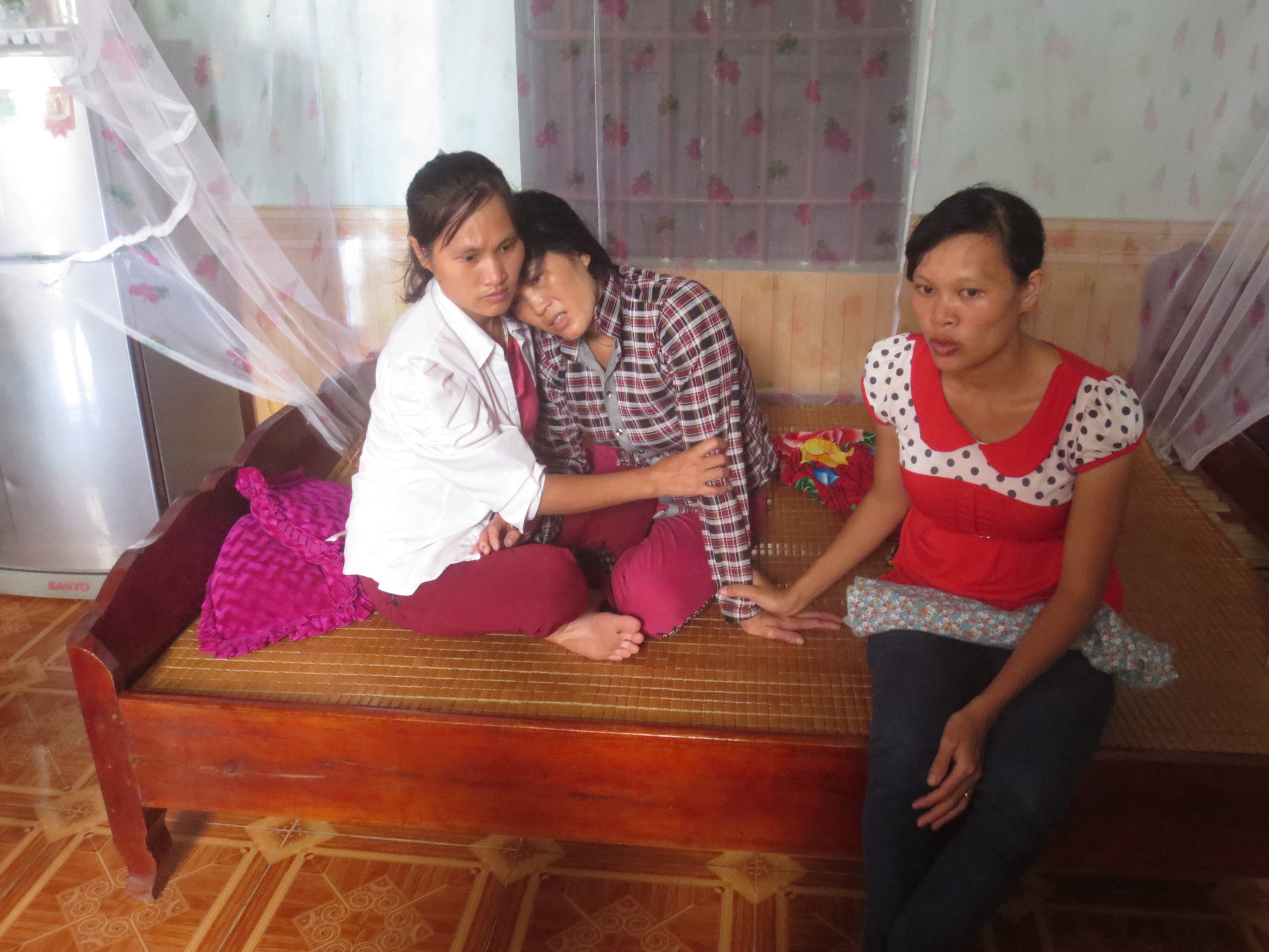 Chị Mười (ở giữa) vật vã, đau xót khi nghe tin con mình bị nước lũ cuốn trôi |
