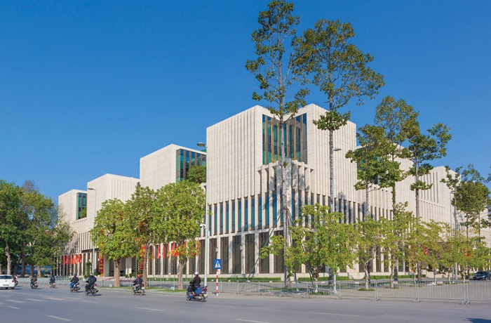 | Nhà Quốc Hội sử dụng vật liệu xây dựng xanh do Eurowindow cung cấp gồm cửa nhôm, vách nhôm kính lớn Eurowindow hệ Stick, cửa chống đạn, cửa trượt tự động, vách kính chống cháy, mái che kính, cửa gỗ thông phòng, cửa gỗ chống cháy, hệ thống rèm ngăn lửa, ngăn khói. |