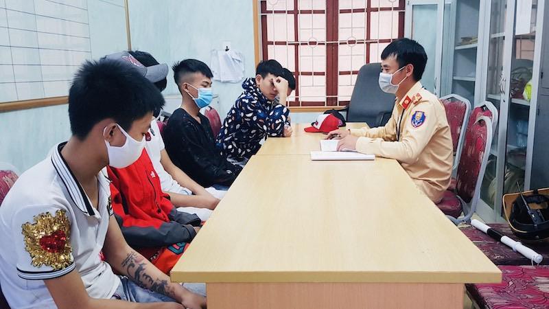 Phát hiện sự việc, lực lượng chức năng đã triển khai phương án vây bắt. Thời điểm bị chặn lại, nhóm thiếu niên không đội mũ bảo hiểm, các xe không có gương chiếu hậu.