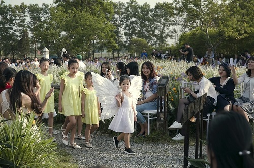 Bố con Xuân Bắc, Bi béo, Minh Lợn hòa mình cùng 500 người mẫu nhí khác. Ảnh: Kieng Can Team |