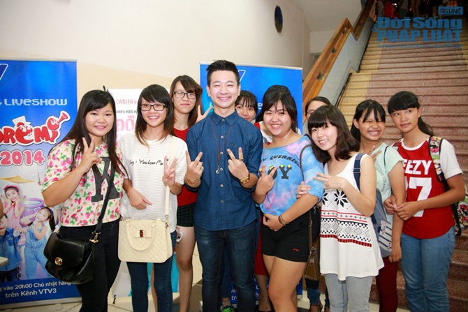 | Thanh Tùng đi cùng rất nhiều fans của mình tới dự xem và cổ vũ cho các em nhỏ trong chương trình. |