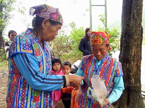 Những nhà hảo tâm mang bánh chưng xanh đến cho đồng bào dân tộc Chứt, xã Hương Liên, huyện Hương Khê (Hà Tĩnh). |