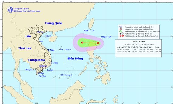 Theo tin tức từ Trung tâm Khí tượng Thủy văn Trung ương, hồi 13h, vị trí tâm áp thấp nhiệt đới ở vào khoảng 18,0 độ Vĩ Bắc; 123,0 độ Kinh Đông. Sức gió mạnh nhất ở vùng gần tâm áp thấp nhiệt đới mạnh cấp 6-7 (40-60km/giờ), giật cấp 9.