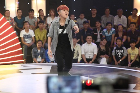 Dù cách kể chuyện cũng có những điểm nhấn nhá để tạo mảng hài nhưng cả hai vị giám khảo vẫn không ai…chịu cười. Đến 7 giây cuối, anh liền rút điện thoại ra và gọi điện thoại: “Alo, còn 7 giây nữa thôi, không thấy giám khảo nào cười, cắt điện ngay cho anh”.