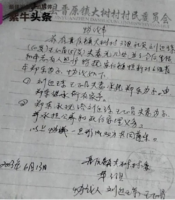 Zheng Dong ký thỏa thuận làm con nuôi của bố mẹ người bạn gái đã qua đời - Ảnh: Newqq |