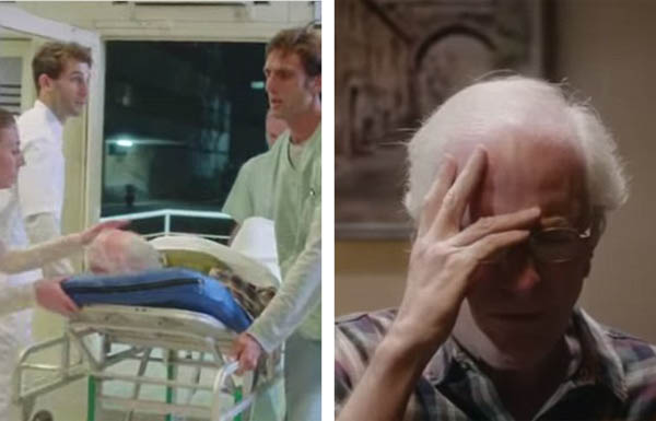 Nhưng đột nhiên người đàn ông giơ tay lên đầu trong đau đơn và sau đó được đưa tới bệnh viện. Chú chó đã cố hết sức chạy theo xe cứu thương và tìm cách vào trong phòng cấp cứu nhưng bác sĩ đã đuổi nó ra. Chú chó sau đó đã chờ đợi bên ngoài bệnh viện với đôi tai rủ xuống và cái đầu cúi xuống buồn rầu.