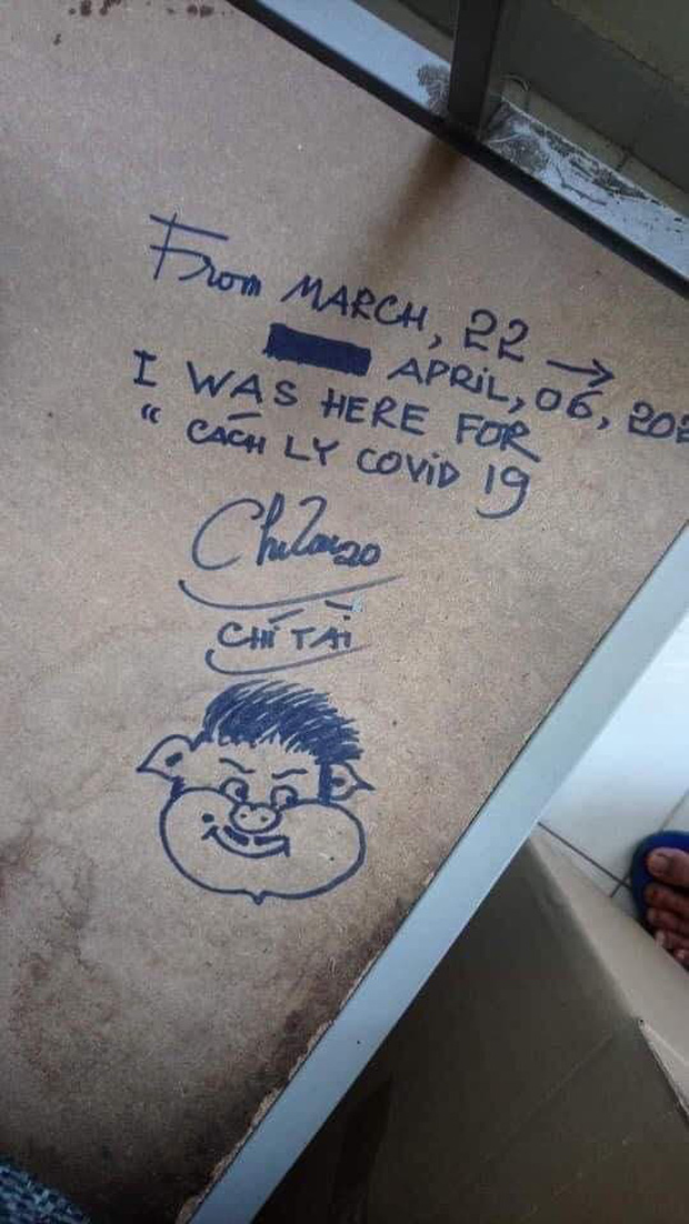 Cụ thể, sau khi trải qua 2 tuần cách ly, nghệ sĩ Chí Tài đã để lại hình vẽ tượng trưng con heo cực kỳ đáng yêu kèm lới nhắn: "I was here for cách ly COVID-19" (Tạm dịch: Tôi đã cách ly ở đây vì dịch COVID-19).