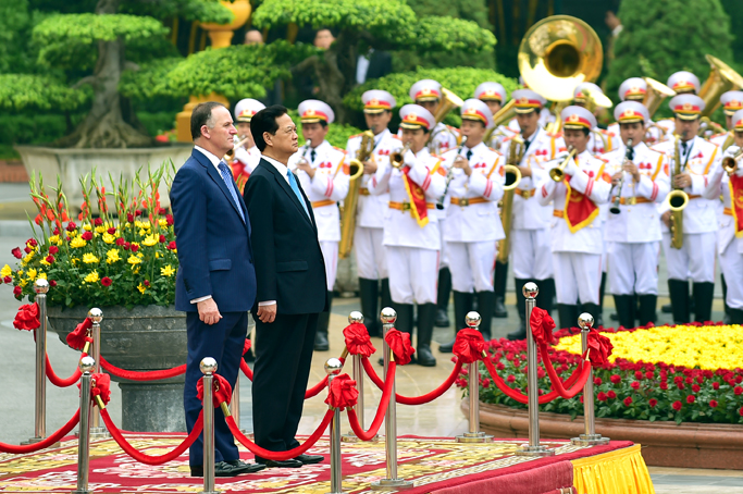 Thủ tướng Nguyễn Tấn Dũng nhiệt liệt chào mừng Thủ tướng John Key thăm chính thức Việt Nam và nhấn mạnh chuyến thăm có ý nghĩa hết sức quan trọng, diễn ra đúng vào dịp hai nước kỷ niệm 40 năm thiết lập quan hệ ngoại giao và đang đứng trước những cơ hội hợp tác chiến lược mới, ngay sau khi kết thúc đàm phán Hiệp định Đối tác xuyên Thái Bình Dương (TPP), Cộng đồng ASEAN sắp chính thức hình thành và New Zealand-ASEAN thiết lập quan hệ đối tác chiến lược.