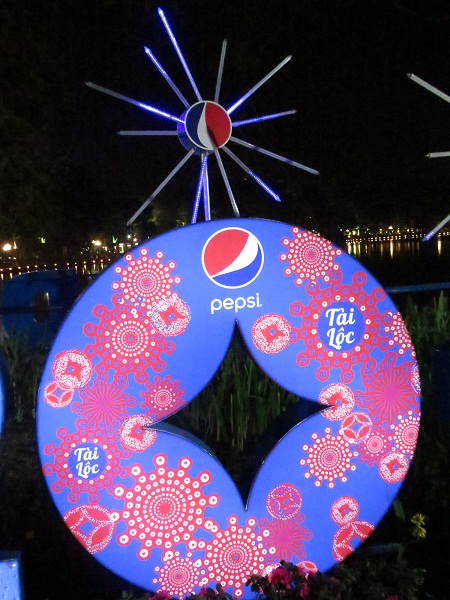 Một địa điểm khác tại hồ Gươm, Pepsi trang trí với dòng chữ " Mừng Đảng mừng xuân". |