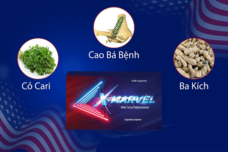 Là thành quả nghiên cứu nhiều năm của các nhà khoa học Việt phối hợp cùng các nhà khoa học Mỹ, X-Marvel là sản phẩm lần đầu tiên được chiết xuất từ cỏ cari kết hợp cùng các bài thuốc quý như Bạch Tật Lê, cao ba kích, cao bá bệnh,... Trong đó cỏ cari được nhập khẩu trực tiếp từ Mỹ, là một loại dược liệu quý, khó cấy trồng, và đắt đỏ… trong cỏ cari có chứa hoạt chất Saponin cao 5 lần dược liệu khác. Chất này thì có khả năng đẩy nhanh quá trình sản sinh Testosterone gấp 20 lần bình thường.