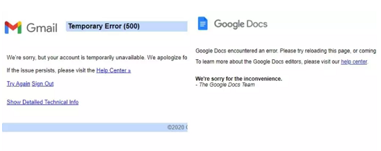 Giao diện lỗi khi truy cập vào Gmail và Google Docs. Ảnh: Business Insider. |
